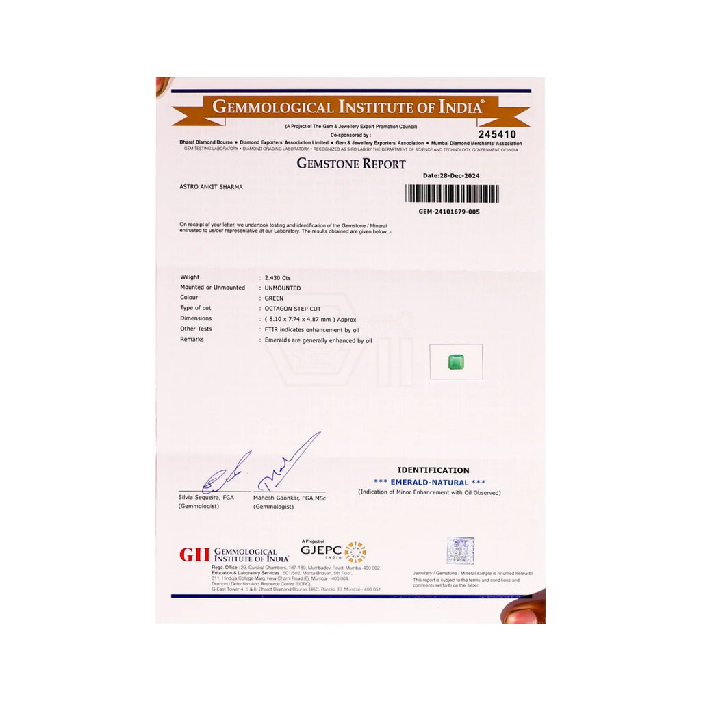 Trusted worldwide, our astrology store deals exclusively in the naturally-found and premium-quality gemstones of all popular varieties, essentially including the original and pure emerald stones, available in different shapes (oval, square, etc.). Emanating vivid and vibrant green hues, our natural emerald gemstones have been obtained arduously from countries like Colombia, Zambia, Chile, etc.